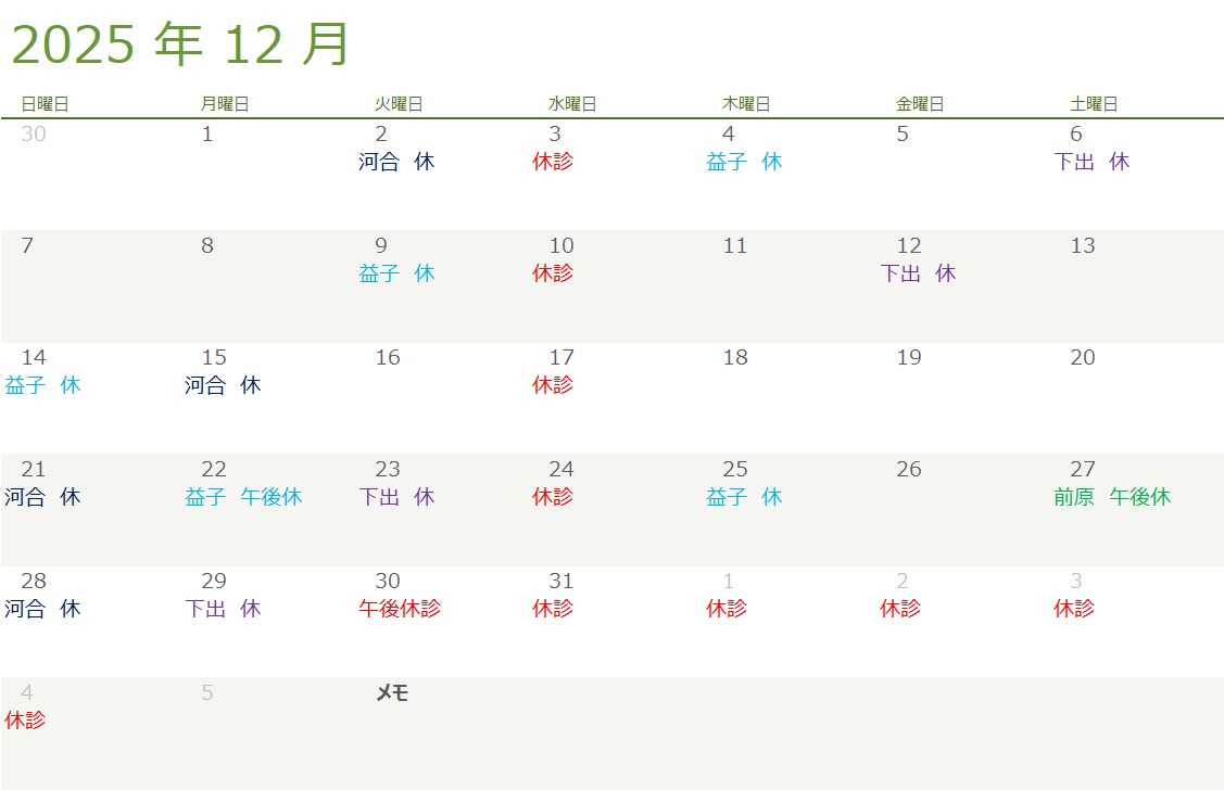 ※ 12月も引き続き、土日の診察が大変混雑しています。