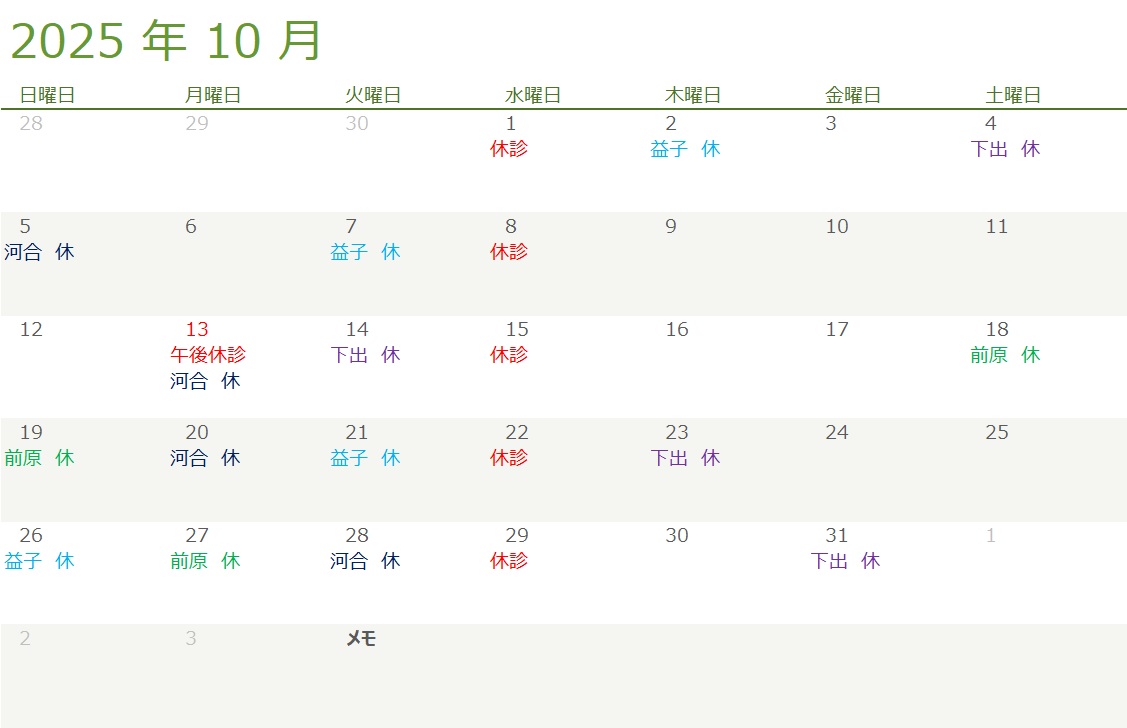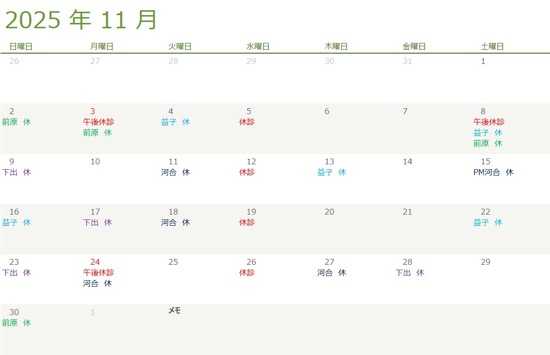 11月2日(日)11月3日(祝)11月8日(土)は院長不在となります。