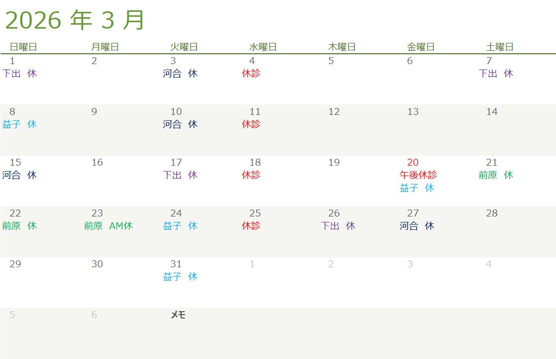 担当の獣医師がお休みの時は他の獣医師が診察いたします。